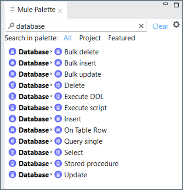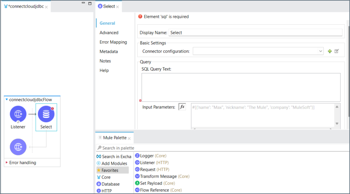 Drag the database operation you want to perform to the Message Flow area. For this example, we choose Select.