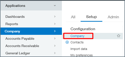 Under Setup select Company.